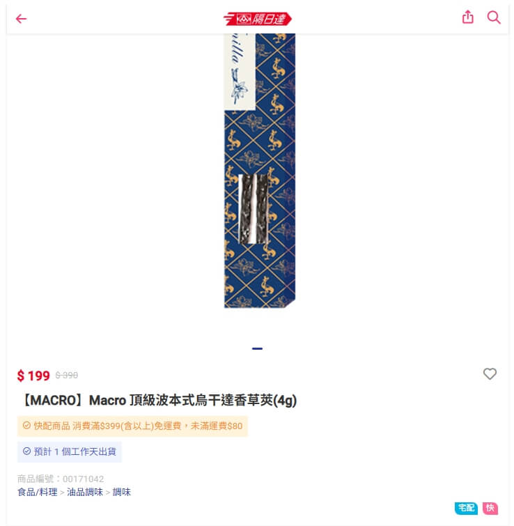 最常遇到詢問的就是急用時全聯買的到香草精、香草粉、香草莢嗎?截止至整理日期,目前全聯門市沒有販售但是全聯的隔日達平台有「全聯香草莢」,2支共4g是199元,如果急用或少量用能買的到